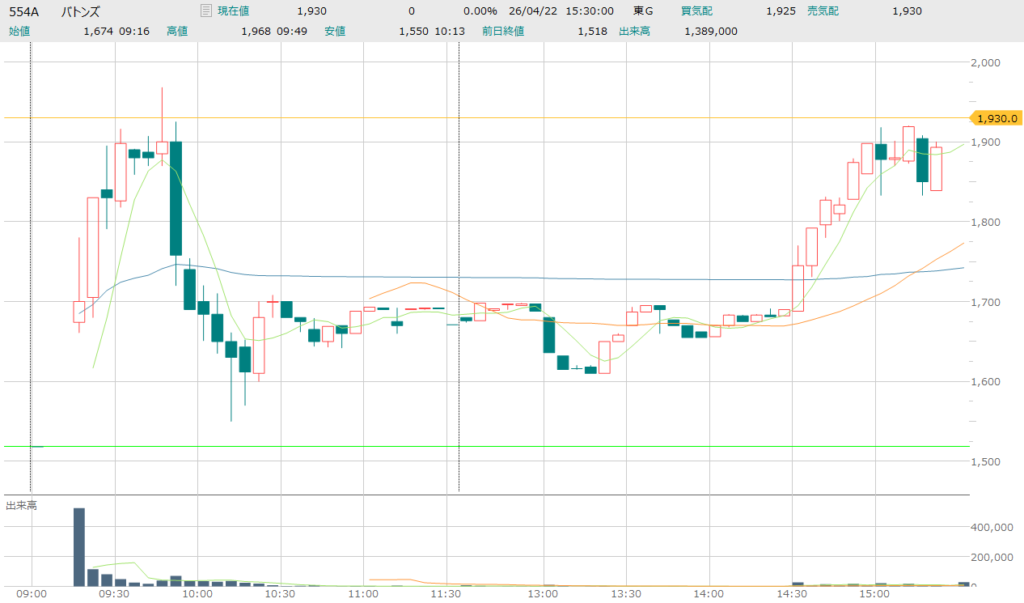 バトンズ(554A)上場初日は値付かず!注目の初値は明日に持ち越し!