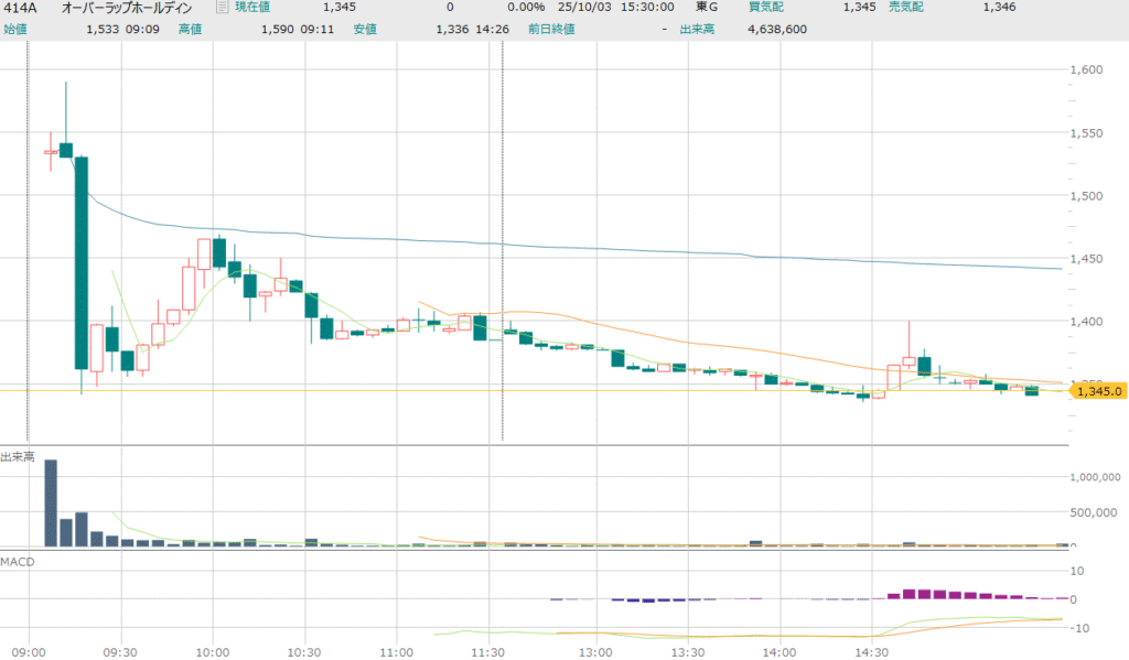 本日の出来高は463.8万株で、売出株数の0.5回転ほどの薄商いで需要の低さが現れています。