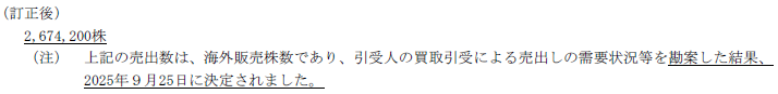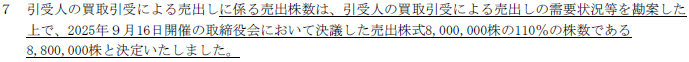 ・売出株数の変更:変更前 8,000,000株 → 変更後 8,800,000株(+800,000株)