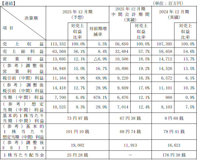 項目/決算期 | 2025/12(予想) | 2024/12 | 2023/12 |