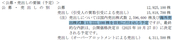 海外売り | 有(正式なグローバルオファリング、13,222,100株予定) |
