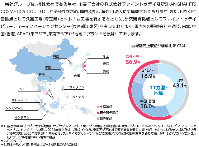 日本と中国・香港で売上の8割を占めており、海外展開は東・東南アジアに限られている模様です。