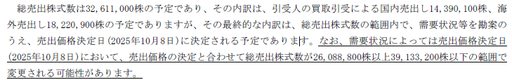 また、売出株式数は80%~120%の範囲で変更される可能性があります。
