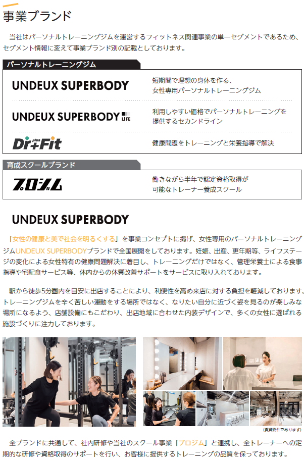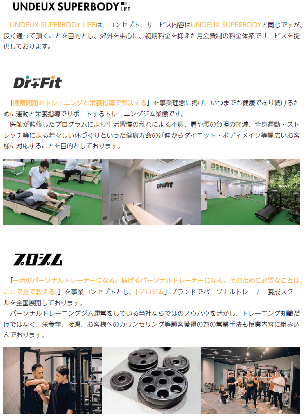 事業内容:パーソナルトレーニングジム及びパーソナルトレーナー養成スクールの運営