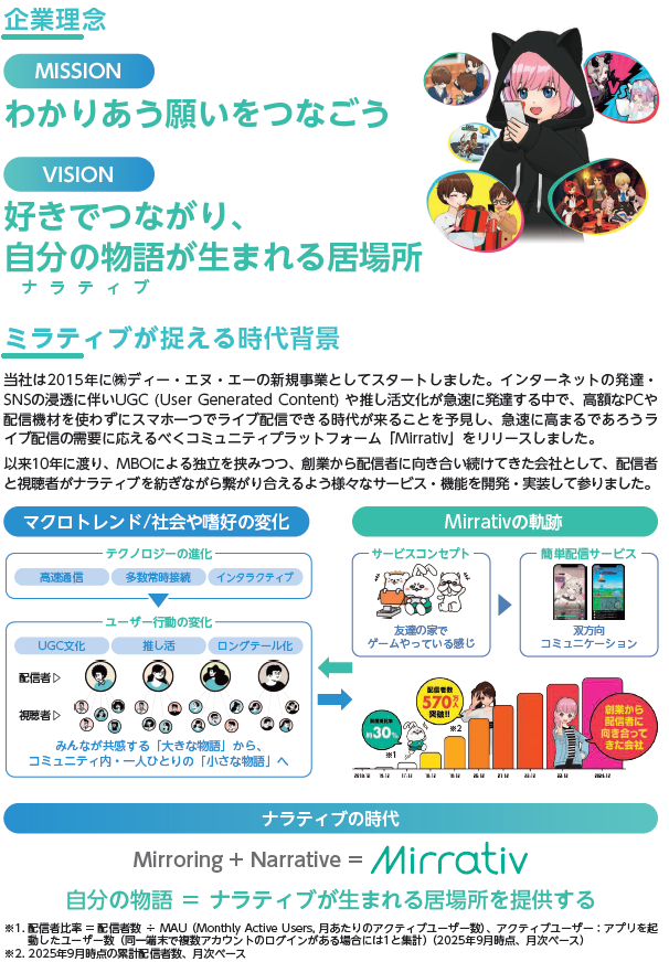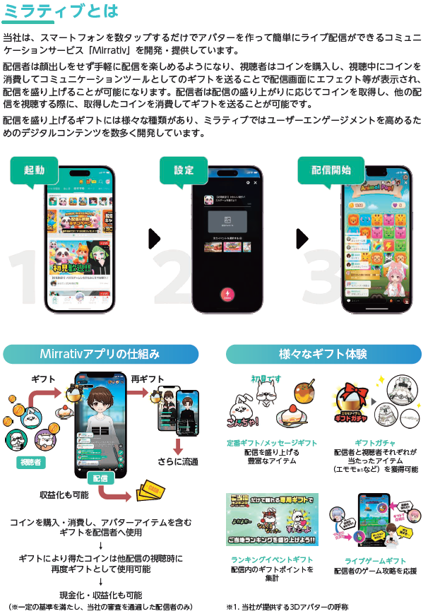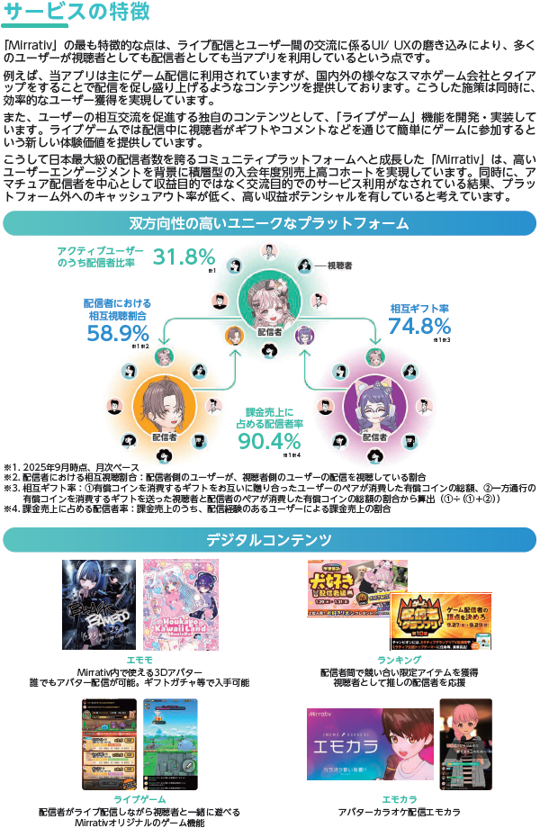 事業内容:ライブ配信プラットフォーム「Mirrativ」の開発・運営及び周辺事業
