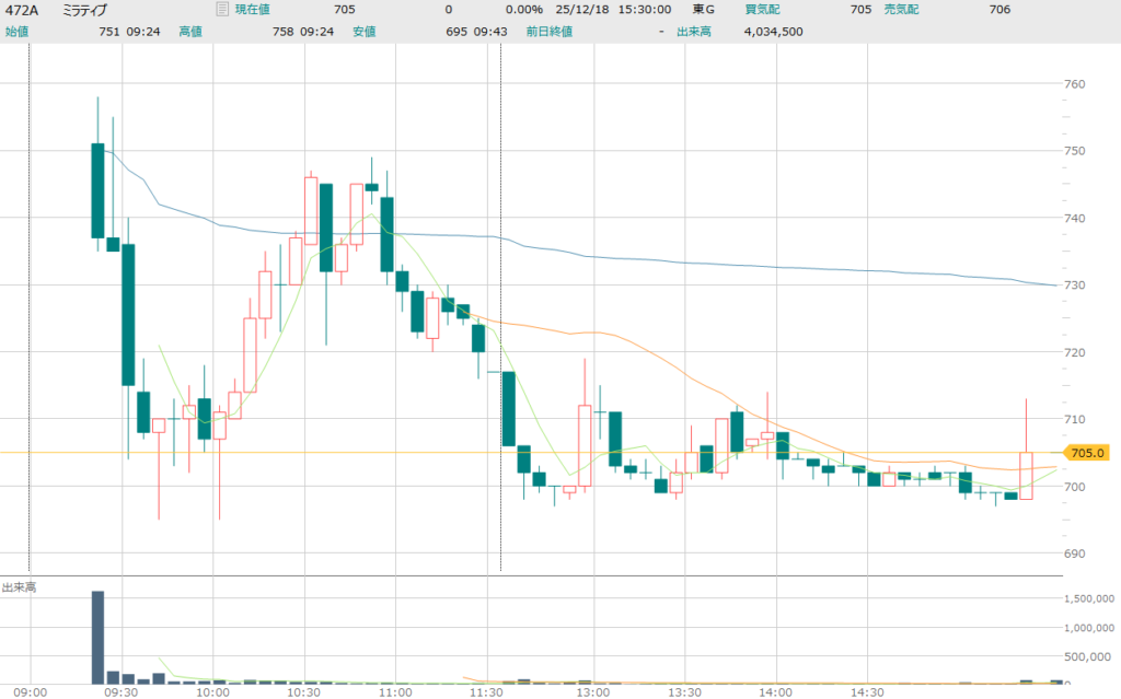 なお、他社の上場直前の初値予想は公開価格と同値となっていましたが、ラッシュ時期の強弱がはっきり出る傾向から盛大に公募割れとなりました。
