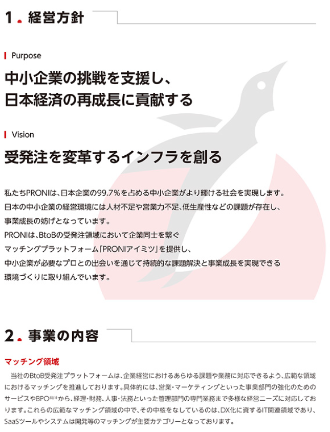 事業内容:BtoB受発注プラットフォーム「PRONIアイミツ」の運営