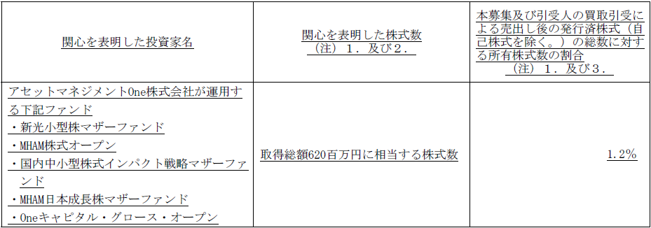 ただし、関心の表明に拘束力はなく、継続保有の確約もありません。