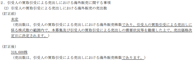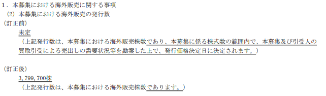 なお、親引けは555,400株、海外売りは4,118,300株で決定しており、これらを考慮すると78.57億円(5,820,300株)になります。