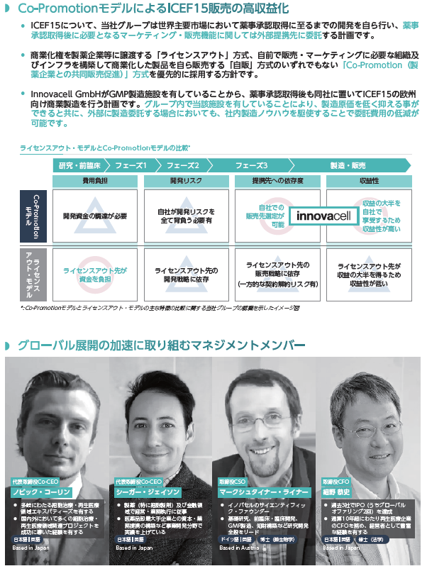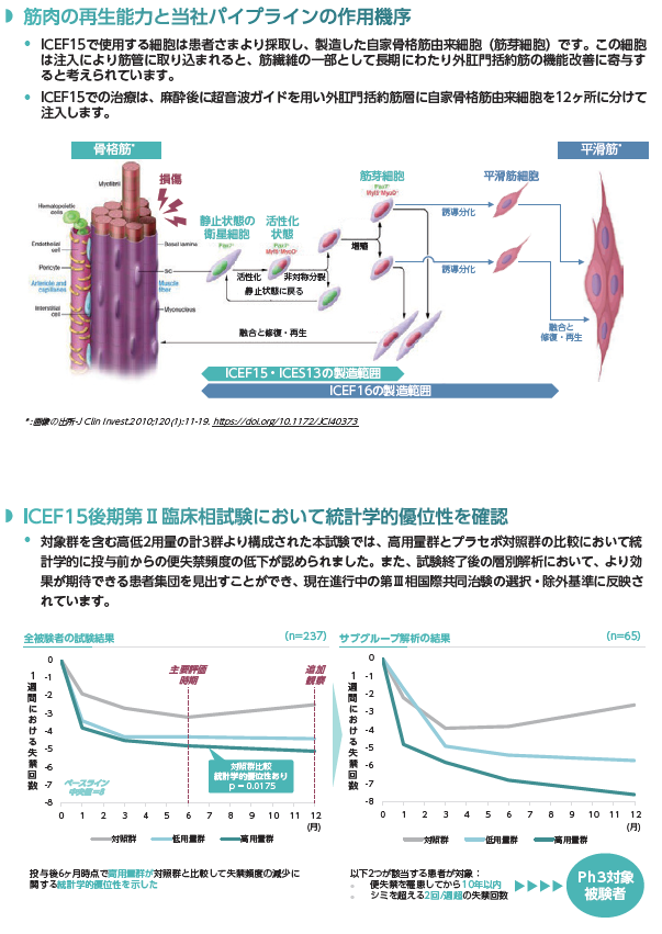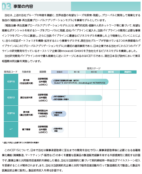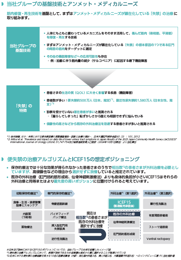 事業内容:便失禁、尿失禁疾患などを対象とした再生医療等製品の開発、製造及び販売