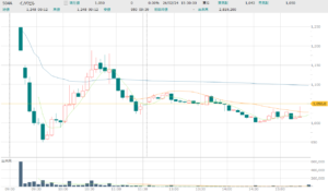 本日の出来高は1,061,600株で公募売出合計 3,691,500株の0.3回転となっています。スタンダード市場とはいえ、薄商いですね。