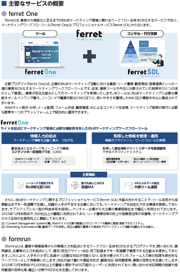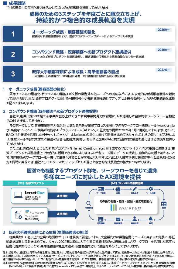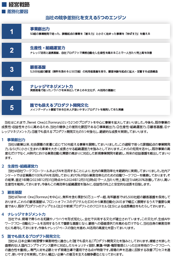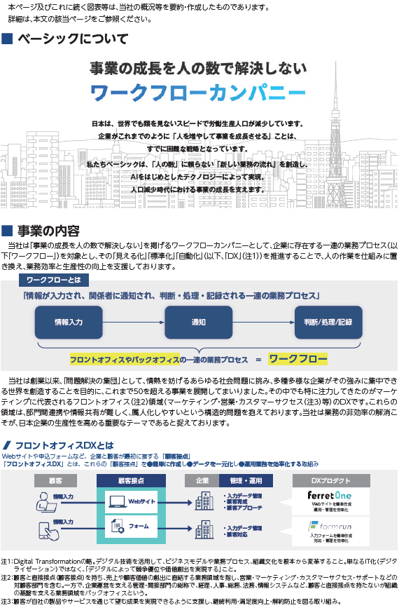 事業内容:ワークフローカンパニーとして、フロントオフィス業務を起点に、業務を支える各種ツールを通じて業務の自動化と生産性向上を支援