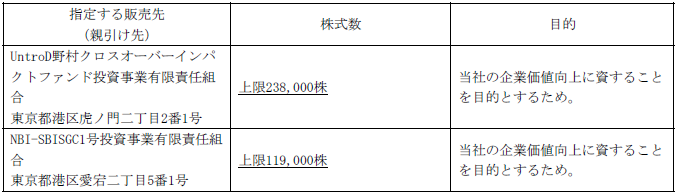・関心の表明:有(上限 333,300株)(3.00億円相当(@900円))