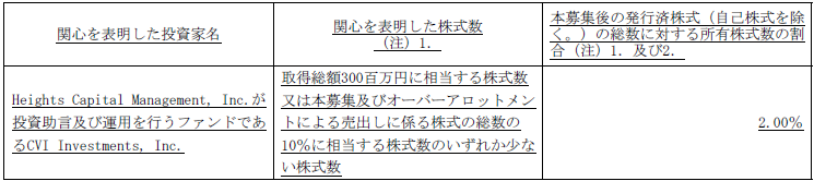 ただし、関心の表明に拘束力はなく、継続保有の確約もない点には注意が必要です。