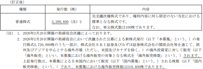なお、親引けは181,000株、海外売りは519,400株で決定しており、これらを考慮すると68.87億円(5,509,600株)になります。