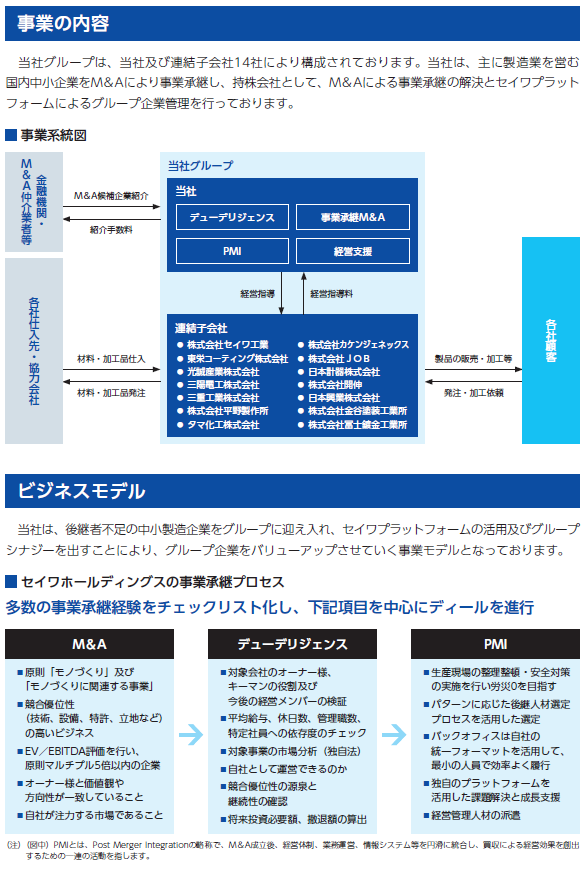 事業内容:製造業の事業承継推進、プラットフォーム化によるグループ経営