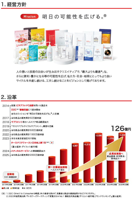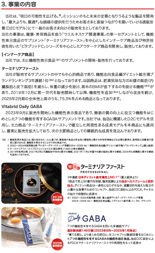 事業内容:ウエルネスケア関連の商品企画・開発・D2C販売