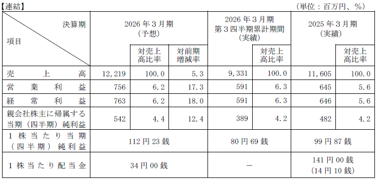 | 項目/決算期 | 2026/03(予想) | 2025/03 | 2024/03 |