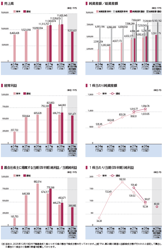 経営成績及び財政状態、1株あたり情報(PER、PBR)