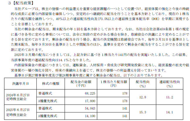 また、配当も継続して出しており、今期予想は想定価格ベースでの利回りが3.58%ある点は評価したいと思います。
