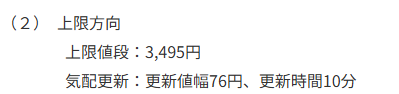 なお、1,800円の場合、明日の気配更新値幅は76円、更新時間は10分となるため、10時前での初値形成となりそうです。
