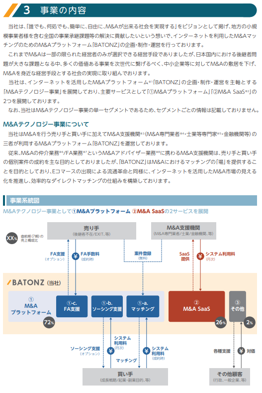 事業内容:M&A 総合プラットフォーム「BATONZ」の企画・開発・運用