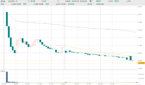 初値をつけた後は一気に高値の1,680円まで駆け上がるも11時頃まで売り込まれる展開に。後場に入ってからは1,620円~1,640円で推移し、最後は1,623円に下がりましたがなんとかVWAPの1,615円よりも上の位置で本日の取引を終えています。