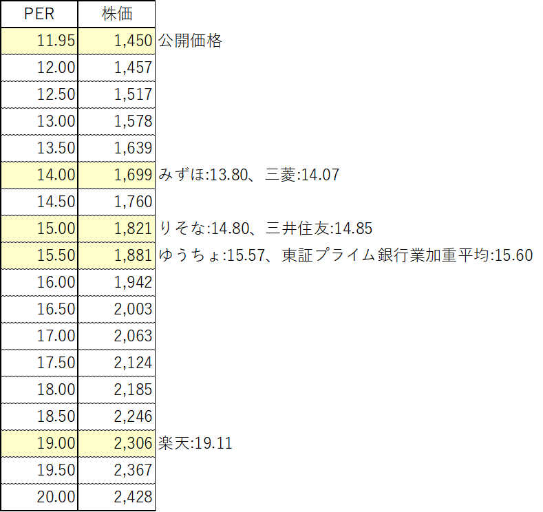 26/03予想EPSは121.38ですので、12/19終値1,731円のPERは14.26となり、三菱とりそなの間に位置しています。