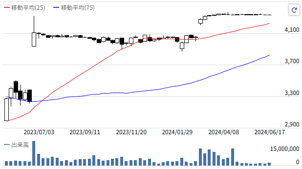 ・2024/03/04終値:4,245円(3/4にTOBが3月中に実施される旨の報道)