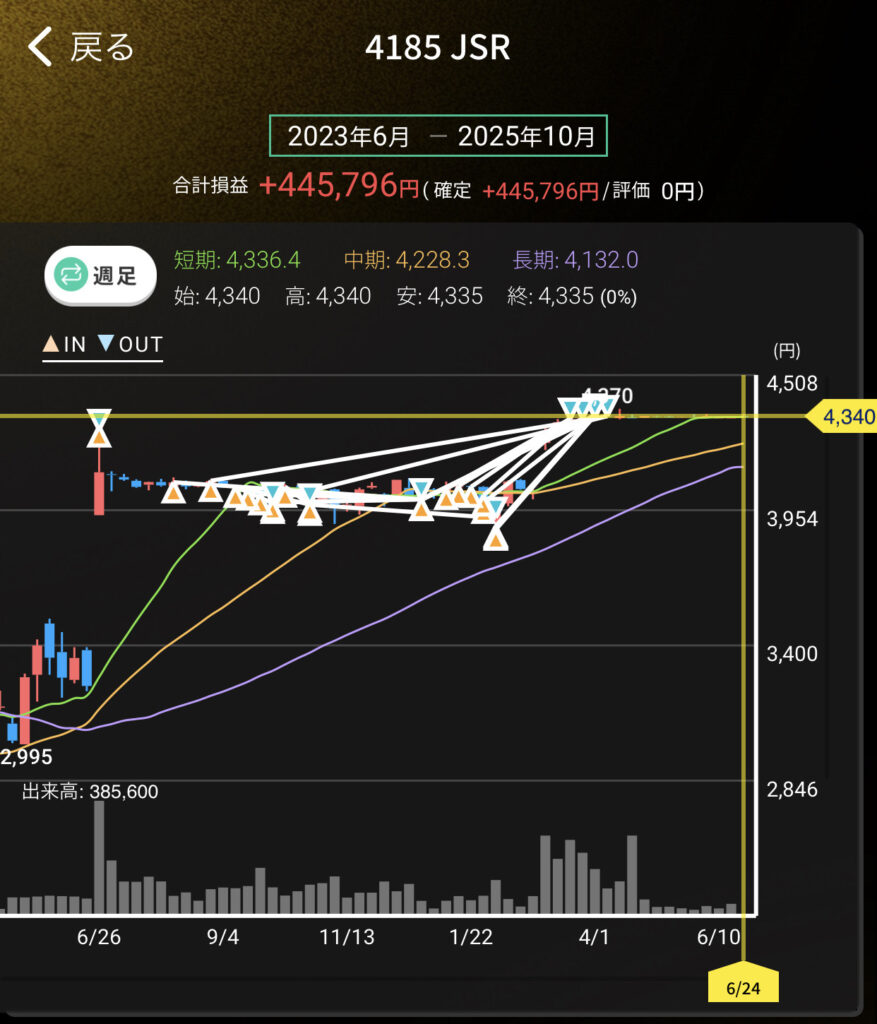 余談ですが、新光電気工業株式会社(6967)もJSRと同じ産業革新投資機構系のJICC-04株式会社によるTOBが実施されましたが、こちらは参加していたのですが2024/8の日銀植田ショックで大きく損切りしました。その後買い直してほぼトントンとなったところで手仕舞いし、再エントリーの機を窺っていましたがタイミングを逃してしまいました。