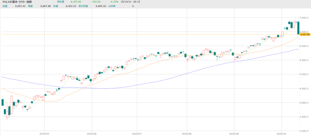 ダウは1.9%、ナスダックは3.56%、S&P500は2.71%と大きく下げていますが、それ以上にフィラデルフィア半導体株指数は6.32%の下落となっています。